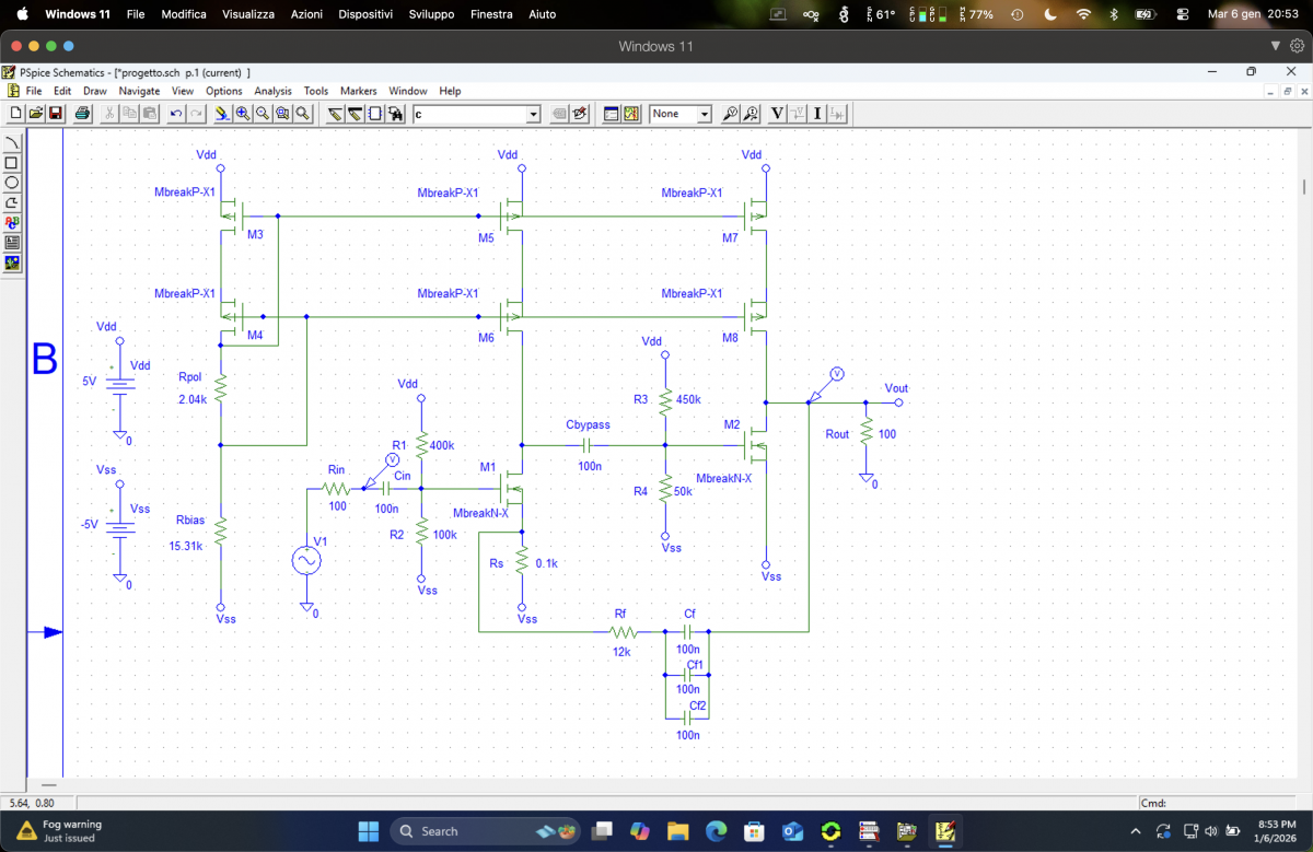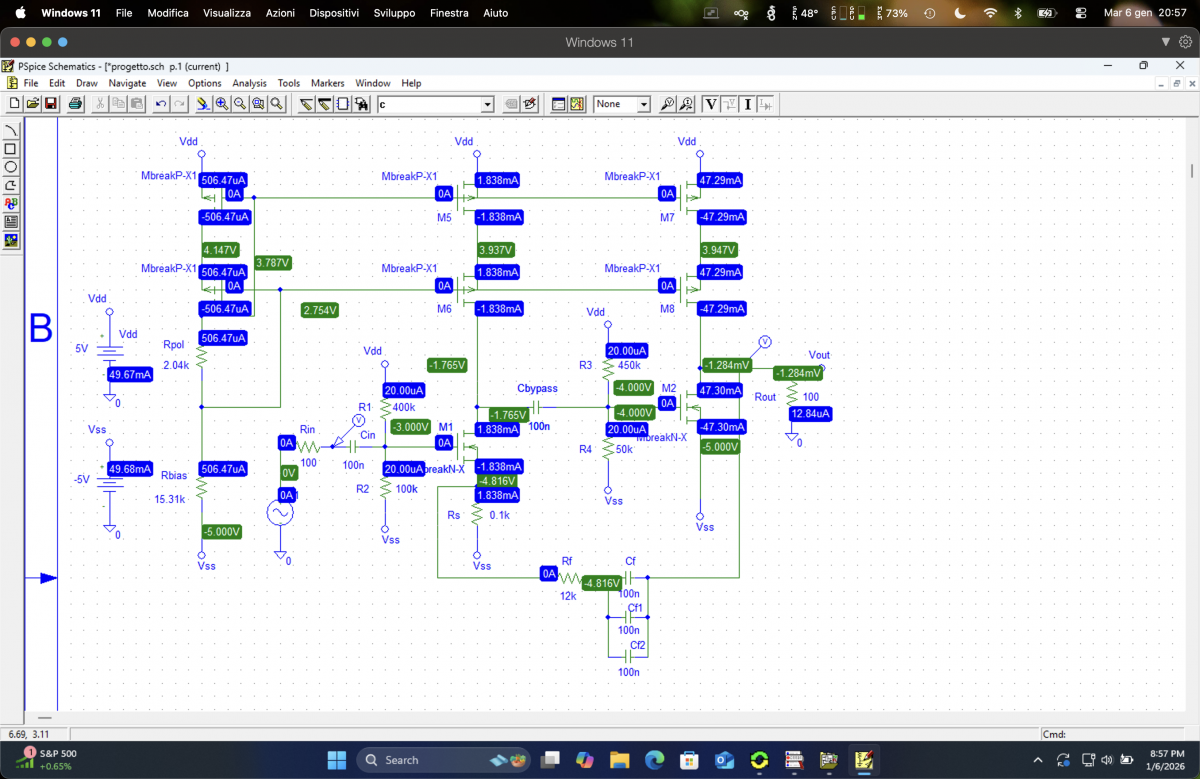 Questo progetto è stato creato da me assieme a dei miei colleghi durante il corso di Elettronica Analogica frequentato al Politecnico di Milano, lo schematico è di un circuito integrato amplificatore pensato per amplificare il suono di un microfono con bassa distorsione, di seguito la consegna del lavoro assegnata: